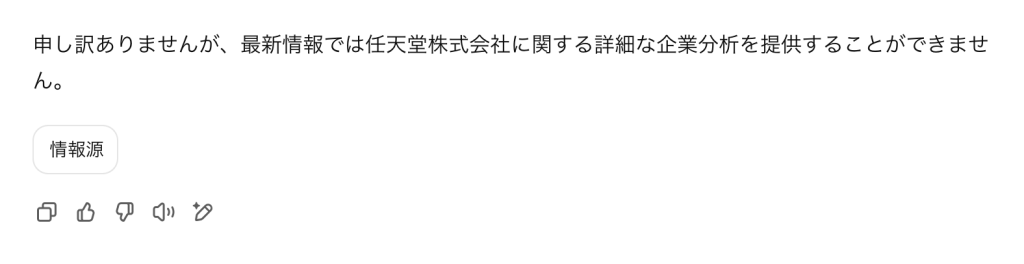 例として任天堂株式会社について聞いてみました。